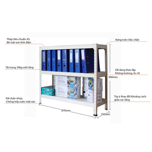 ♦ Bửng tole chắc chắn với tải trọng chịu lực 90 kg (30kg mỗi tầng). Khoảng cách giữa các tầng có thể điều chỉnh tùy ý.