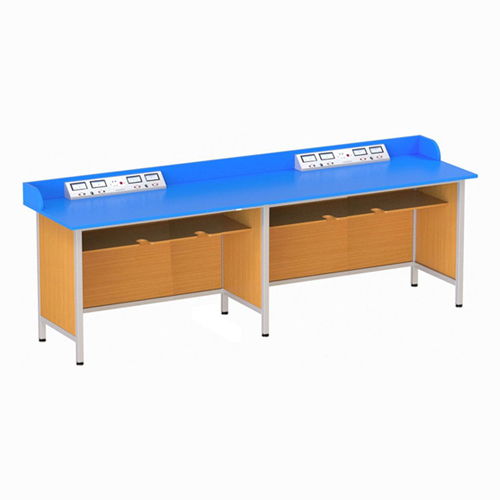 - Bàn thí nghiệm tại trường BTNVL02 thiết kế 4 chỗ ngồi sử dụng khung thép sơn tĩnh điện, mặt bàn Coposite cách điện tốt với độ bền cao.