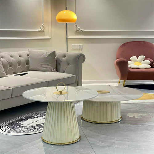 - Bàn trà tròn đôi mặt đá hiện đại.